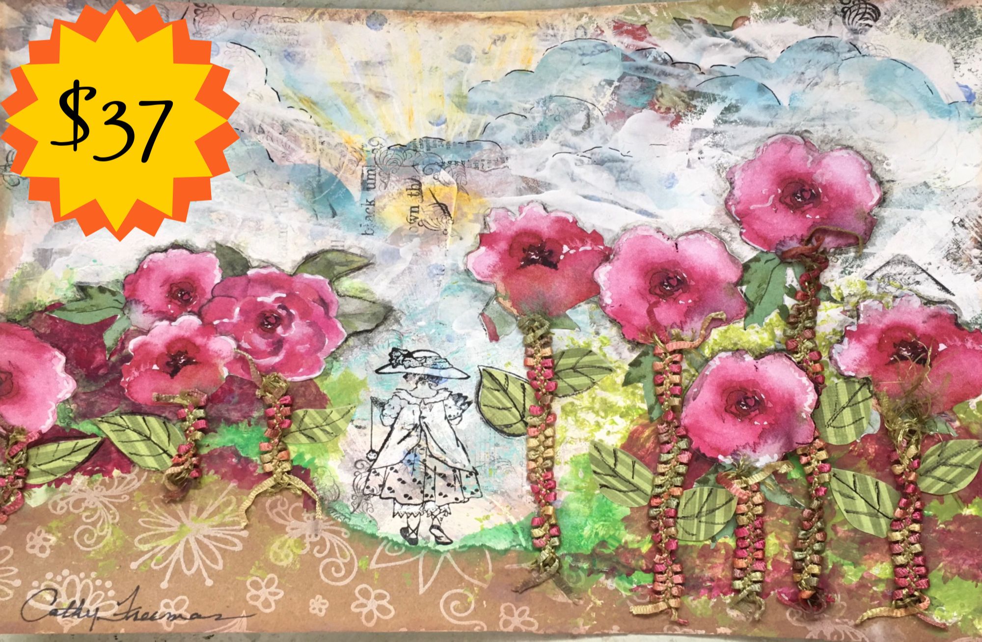 Mixed media project using collage, watercolor and stencil.